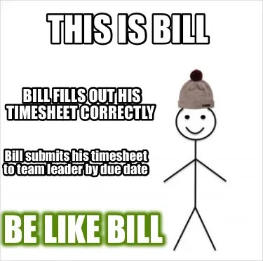Create This is bill Be like bill Bill fills out his timesheet correctly Bill submits h Meme