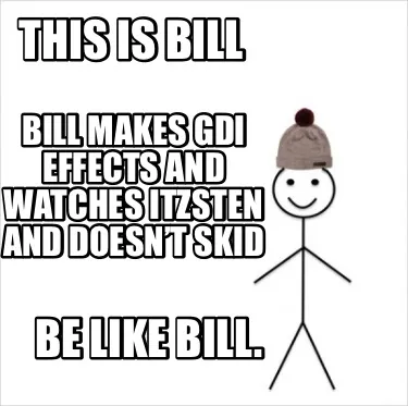 This is bill Bill makes Gdi effects and watches Itzsten and doesn’t skid Be li Meme Template