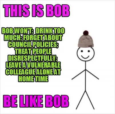 This Is Bob Be Like Bob Bob Wont Drink Too Much Forget About Council Policies Tr Meme Template