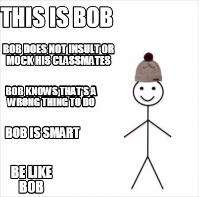 This is bob Bob does not insult or mock his classmates bob is smart be like bob Meme Template
