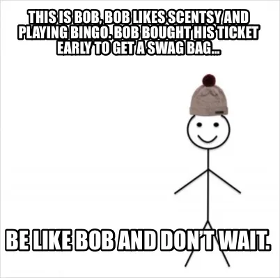 This is Bob, Bob likes Scentsy and playing Bingo. Bob bought his ticket early to Meme Template