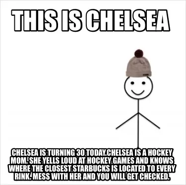 Create This is Chelsea Chelsea is turning 30 today.Chelsea is a hockey mom. She Yells l Meme