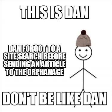 Create This is dan don't be like dan dan forgot to a site search before sending an arti Meme