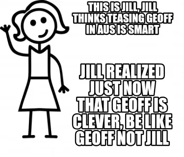 Create This is Jill, Jill thinks teasing Geoff in Aus is smart Jill realized just now t Meme