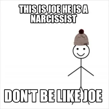 Create This is Joe he is a narcissist Don't be like Joe Meme