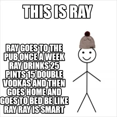 Create This is Ray Ray goes to the pub once a week Ray drinks 25 pints 15 double vodkas Meme