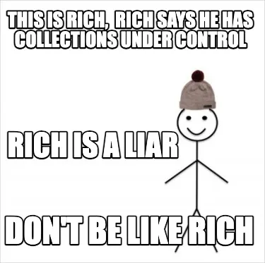Create This Is Rich Rich Says He Has Collections Under Control Dont Be Like Rich Rich I Meme