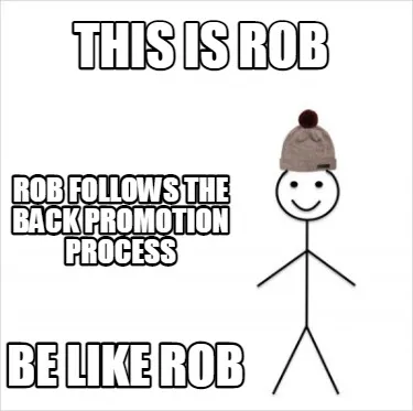 This is rob Rob follows the back promotion process Be like Rob Meme Template