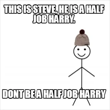 This is Steve, He is a Half Job Harry. Dont Be a Half Job Harry Meme Template