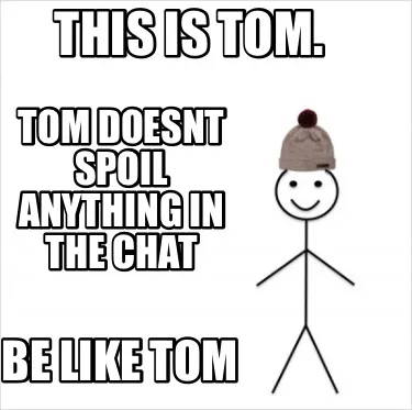 Create This is tom. Be like tom Tom doesnt spoil anything in the chat Meme