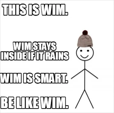 This is wim. Wim stays inside if it rains Wim is smart. Be like Wim. Meme Template