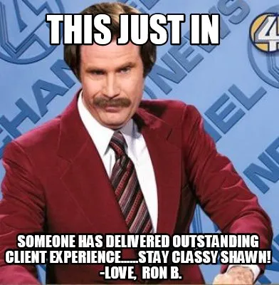 Create Funny this just in someone has delivered outstanding client experience......stay clas Meme