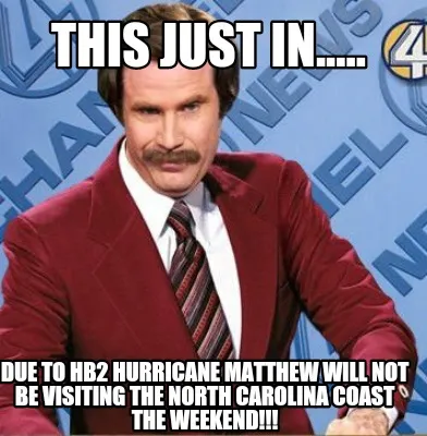 This Just In..... Due to HB2 Hurricane Matthew will not be visiting the North Ca Meme Template