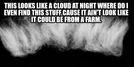 Make your own "This looks like a cloud at night where do I even find this stuff cause it ain't" meme with MemeCreator's free online meme generator. Add text, stickers, and drawings — then download or share. No watermark, no sign-up required.