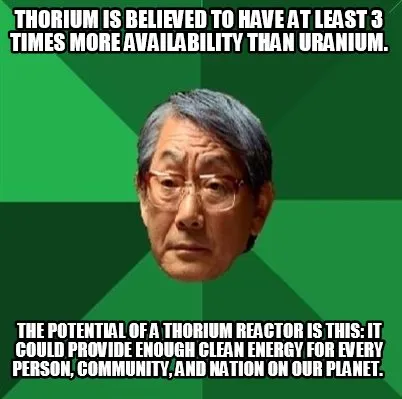 Thorium is believed to have at least 3 times more availability than uranium. The Meme Template