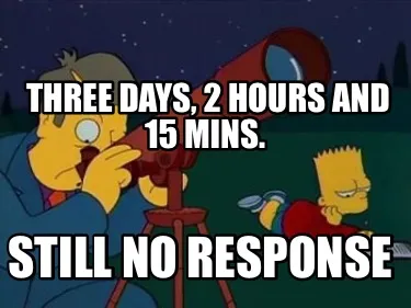Three days, 2 hours and 15 mins. Still no response Meme Template