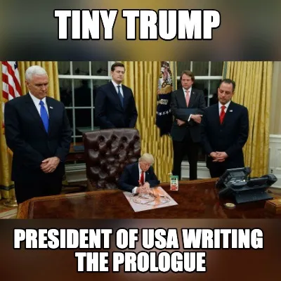 Tiny Trump President Of Usa Writing The Prologue Meme Template