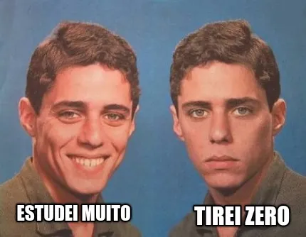 Make your own "Tirei Zero Estudei muito" meme with MemeCreator's free online meme generator. Add text, stickers, and drawings — then download or share. No watermark, no sign-up required.