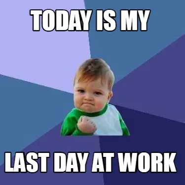 Make your own "Today is my Last day at work" meme with MemeCreator's free online meme generator. Add text, stickers, and drawings — then download or share. No watermark, no sign-up required.