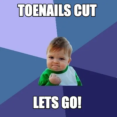 Make your own "Toenails cut lets go!" meme with MemeCreator's free online meme generator. Add text, stickers, and drawings — then download or share. No watermark, no sign-up required.