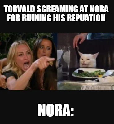 Create Torvald screaming at nora for ruining his repuation Nora: Meme