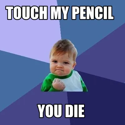 Make your own "Funny Touch my pencil you die" meme with MemeCreator's free online meme generator. Add text, stickers, and drawings — then download or share. No watermark, no sign-up required.