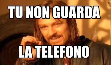 Make your own "Tu non guarda la telefono" meme with MemeCreator's free online meme generator. Add text, stickers, and drawings — then download or share. No watermark, no sign-up required.