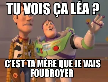 Make your own "Funny Tu vois ça Léa ? C’est ta mère que je vais foudroyer" meme with MemeCreator's free online meme generator. Add text, stickers, and drawings — then download or share. No watermark, no sign-up required.