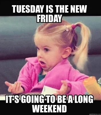 Create Funny Tuesday is the new friday It’s going to be a long weekend Meme