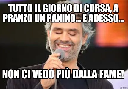 Make your own "Funny Tutto il giorno di corsa, a pranzo un panino... e adesso... Non ci vedo più dal" meme with MemeCreator's free online meme generator. Add text, stickers, and drawings — then download or share. No watermark, no sign-up required.