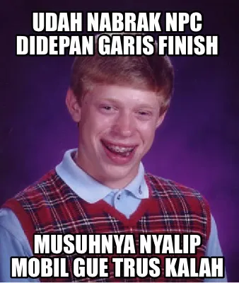 Create Funny Udah nabrak npc didepan garis finish Musuhnya nyalip mobil gue trus kalah Meme