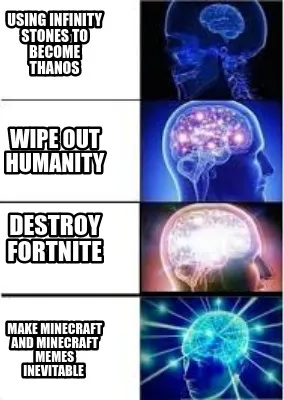 Make your own "Using infinity stones to become thanos Make minecraft and minecraft" meme with MemeCreator's free online meme generator. Add text, stickers, and drawings — then download or share. No watermark, no sign-up required.