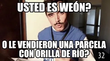 Make your own "USTED ES WEÓN? O le vendieron una parcela con orilla de río?" meme with MemeCreator's free online meme generator. Add text, stickers, and drawings — then download or share. No watermark, no sign-up required.