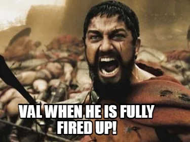 Create Funny Val when he is fully fired UP! Meme