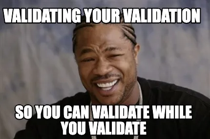 Make your own "Funny Validating your validation so you can validate while you validate" meme with MemeCreator's free online meme generator. Add text, stickers, and drawings — then download or share. No watermark, no sign-up required.