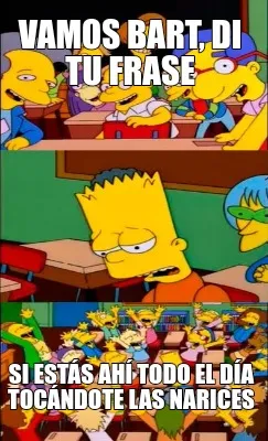 Make your own "Funny Vamos Bart, di tu frase Si estás ahí todo el día tocándote las narices" meme with MemeCreator's free online meme generator. Add text, stickers, and drawings — then download or share. No watermark, no sign-up required.