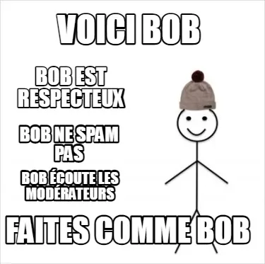 VOICI BOB FAITES COMME BOB BOB EST RESPECTEUX BOB NE SPAM PAS BOB ÉCOUTE LES MO Meme Template