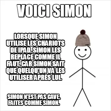 Funny Voici simon Lorsque simon utilise les chariots de ipad, simon les replace comme Meme Template