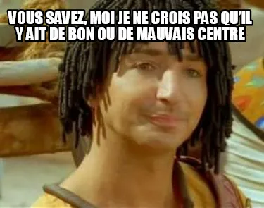 Make your own "Vous savez, moi je ne crois pas qu’il y ait de bon ou de mauvais centre" meme with MemeCreator's free online meme generator. Add text, stickers, and drawings — then download or share. No watermark, no sign-up required.
