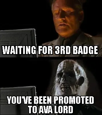 Funny waiting for 3rd Badge You've been promoted to AVA Lord Meme Template