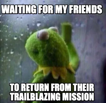 Funny Waiting for my friends to return from their trailblazing mission Meme Template
