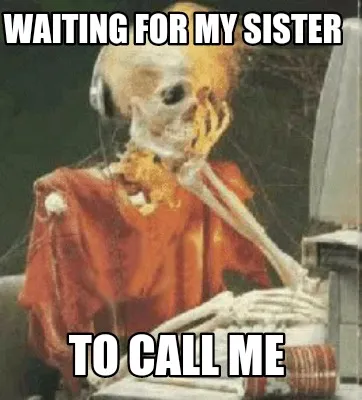 Make your own "Funny Waiting for my sister To call me" meme with MemeCreator's free online meme generator. Add text, stickers, and drawings — then download or share. No watermark, no sign-up required.