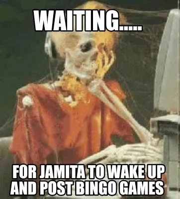 Funny WAITING..... For Jamita to wake up and post bingo games Meme Template