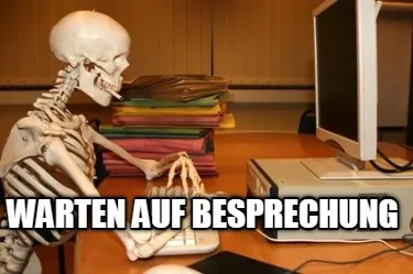 Make your own "Warten auf Besprechung" meme with MemeCreator's free online meme generator. Add text, stickers, and drawings — then download or share. No watermark, no sign-up required.