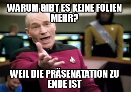 Warum gibt es keine Folien mehr? Weil die Präsenatation zu Ende ist Meme Template