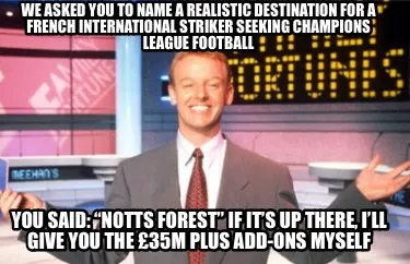 Create Funny We asked you to name a realistic destination for a French international striker Meme