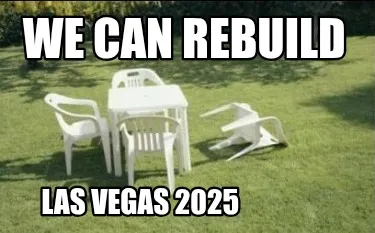 Make your own "We can rebuild Las vegas 2025" meme with MemeCreator's free online meme generator. Add text, stickers, and drawings — then download or share. No watermark, no sign-up required.