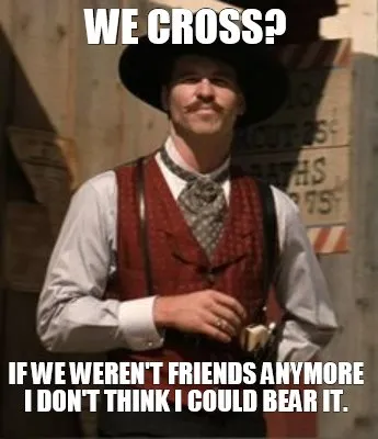 Create We cross? If we weren't friends anymore I don't think I could bear it. Meme