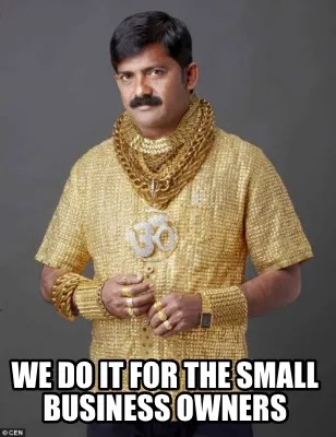 Make your own "We do it for the small business owners" meme with MemeCreator's free online meme generator. Add text, stickers, and drawings — then download or share. No watermark, no sign-up required.