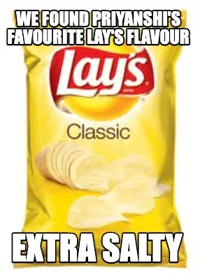 Create We found Priyanshi's favourite lay's flavour extra salty Meme